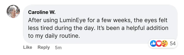 I'm definitely ordering more to get the full benefit. I think LuminEye is the best thing that's ever happened to me and I'm telling all my friends and family!