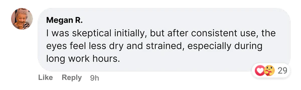 I also have noticed that my eyes are not as dry as they used to be. Lumineye will be a staple in my daily health regime.