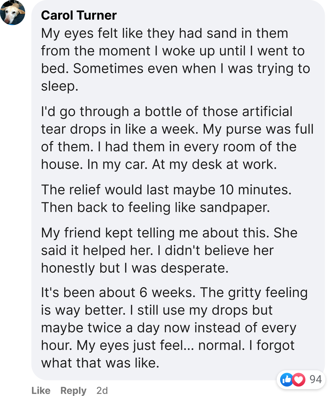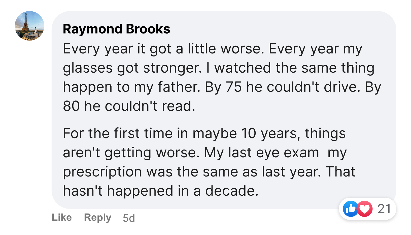 Works even if you've had problems for years (Floaters, blur, dry eyes, night driving issues)